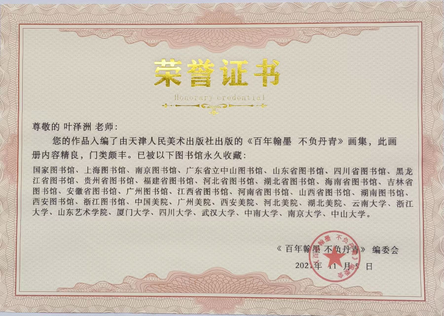 叶泽洲作品入编天津人民美术出版社出版的《百年翰墨 不负丹青》画集