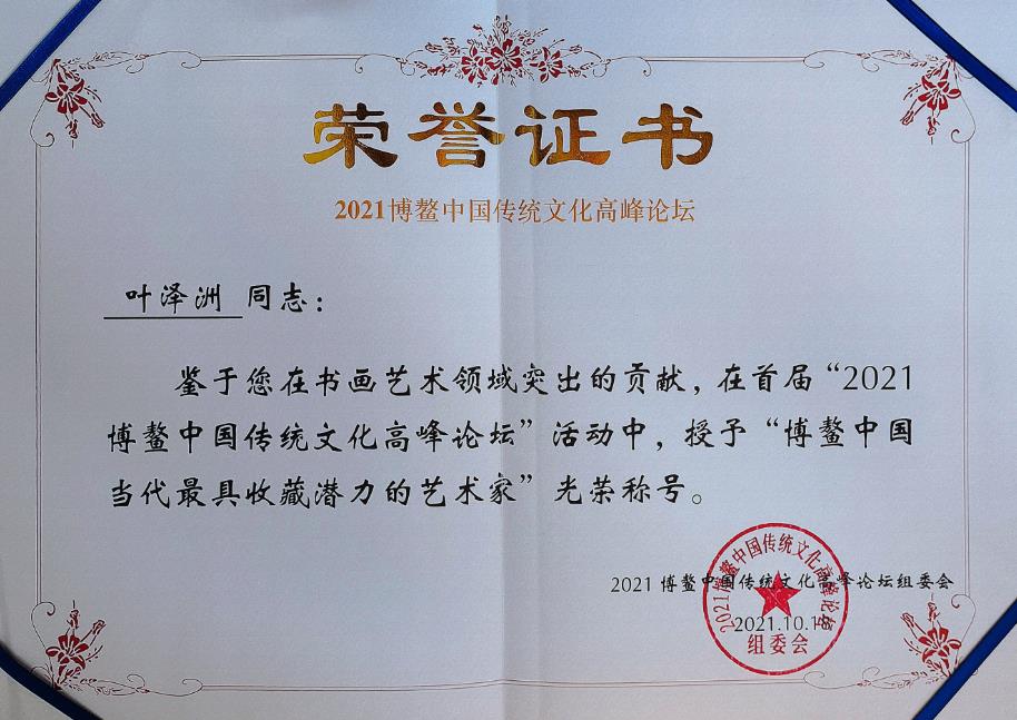 2021博鳌中国传统文化高峰论坛荣誉证书