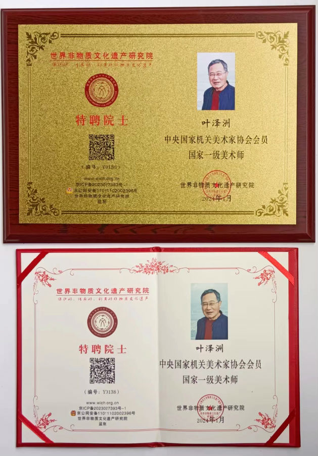 世界非物质文化遗产研究院特聘院士证书